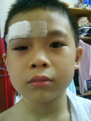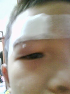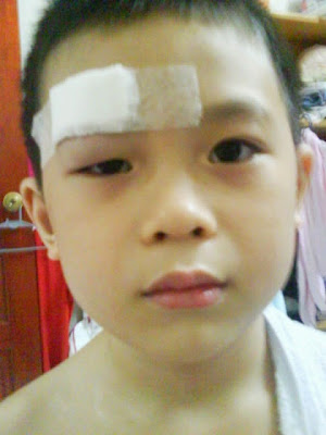 我的可爱弟弟~靠近眉毛的地方缝了8针!不不不~是简直是眉毛的地方~缝了8针~
