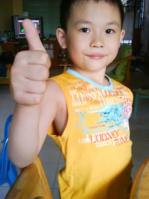 本来上个post要介绍他的~可是现在不用了~=.= 他很喜欢画画~可是他画的东西我都看不懂~叫他画我画到头圆形的~眼睛圆形的~没头发的~and blah blah blah~=.=