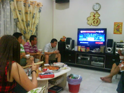 After dinner, 9.30 went to my father's friend's house nearby there.Bored at there :X Just listen they chatting. it's really funny.Keep sms with friend=.= I get many ang pau at there! :D somemore is 10 riggit!