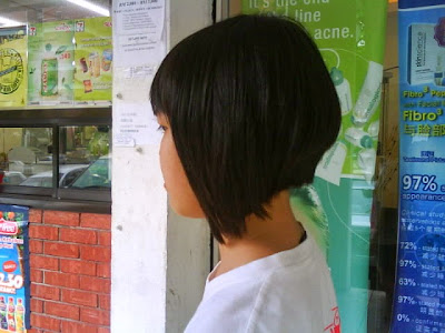 Yesterday, went to haircut with yiqi and brandon after school. Yi qi cut her long hair weh!so short >.< Me and brandon keep laughing when she is in cutting.